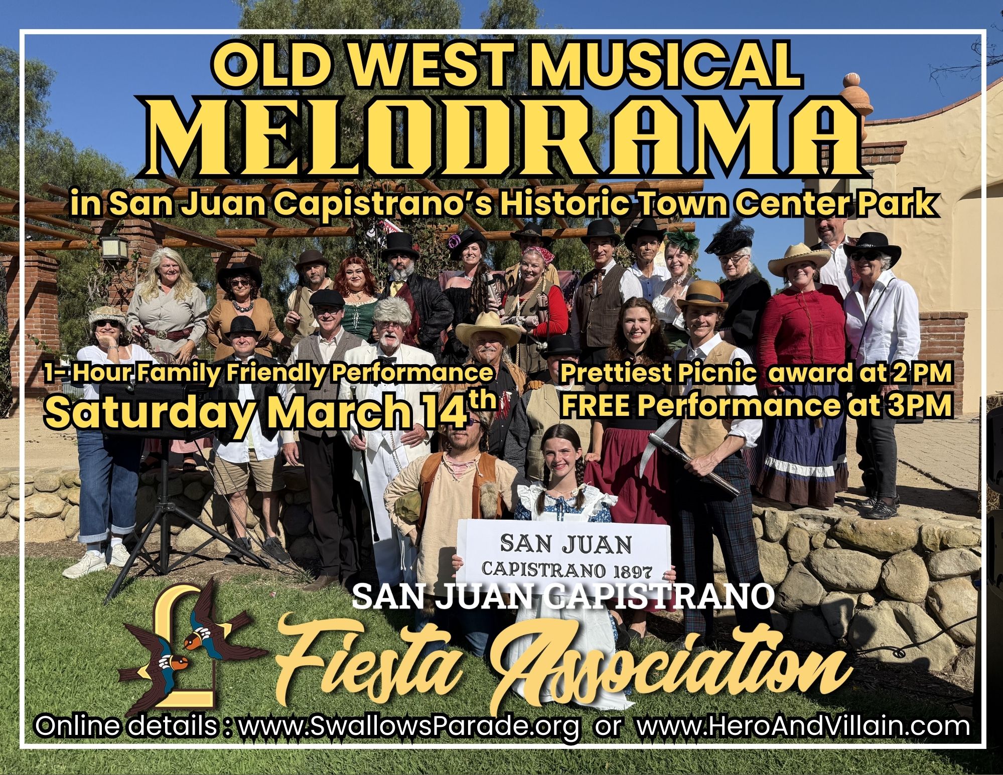 The San Juan Capistrano Fiesta Association Board of Directors unanimously approved President Jim Taylor’s motion to make our Melodrama event officially one of our yearly Fiesta de Las Golondrinas events held leading up to the Swallows Day Parade.